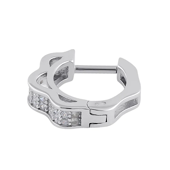 JB:SEZ893 Sterling Silver 8.0mm x 3.0mm Curvy Clear CZ Hoop Earrings